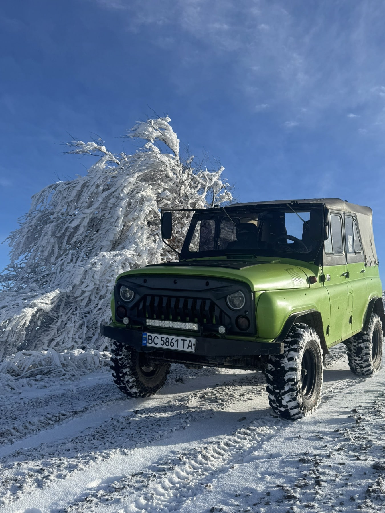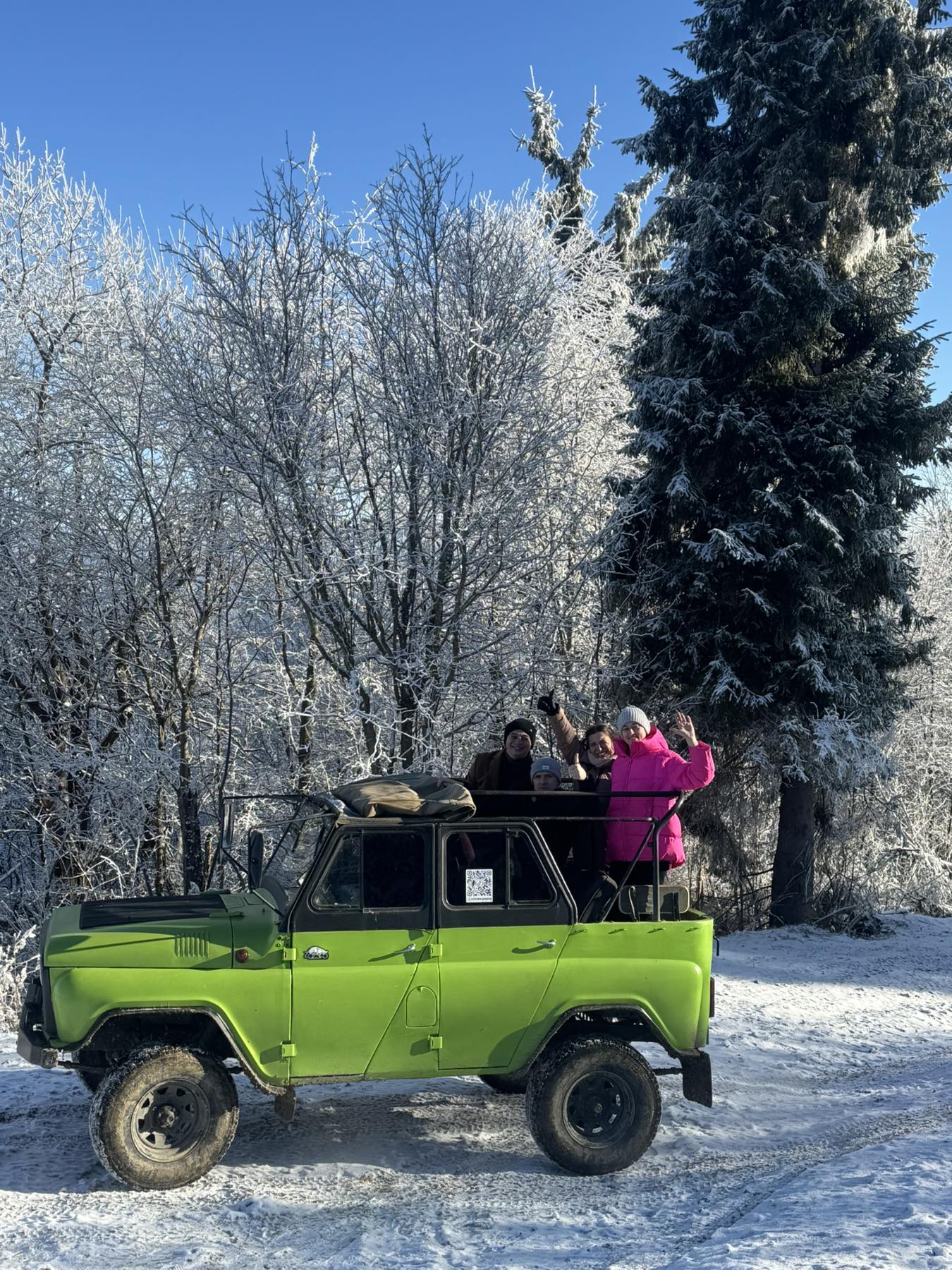 Ми використовуємо підготовлений транспорт, який легко справляється з бездоріжжям та снігом по дорозі.